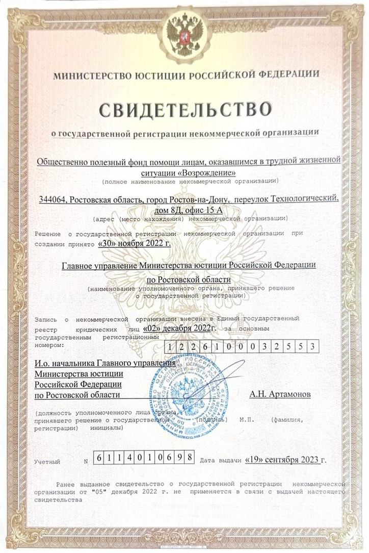 Для ветеранов ВОВ, пожилых людей, семей, которые оказались в трудной жизненной ситуации была организована помощь и раздача продуктовых наборов, лекарств, бытовой химии и одежды. Официально Фонд был зарегистрирован 2 декабря 2022 г. в г. Ростов-на-Дону, и продолжает оказывать помощь всем, кто в ней нуждается. Это возможно лишь благодаря Вашей поддержке.